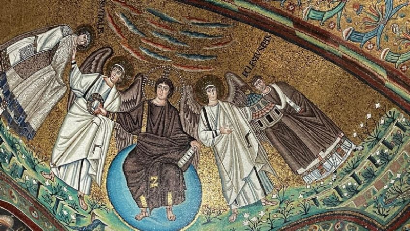 La primera etapa de esplendor se produce en el siglo V, destacaremos el Mausoleo de Gala Placidia y el Baptisterio Ortodoxo, cuyos mosaicos continúan la tradición romana y la inspiración clásica, sin embargo, el vocabulario ya es completamente cristiano.